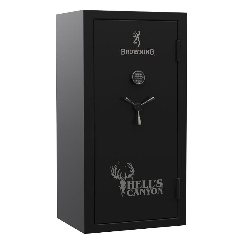 The Hell's Canyon Series-33 by Browning Safes offers unmatched security and advanced technology for firearm enthusiasts. With a capacity for 33 long guns and 27 cubic feet of storage, this American-made safe is designed to protect your most valuable possessions. Its exterior dimensions are 25" x 60" x 31" (D×H×W), and it weighs 700 lbs, providing robust and reliable protection.