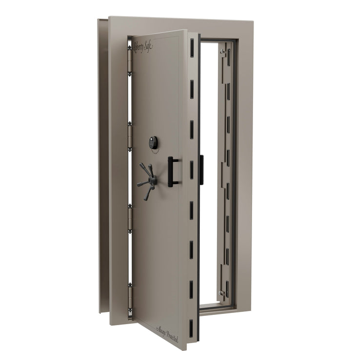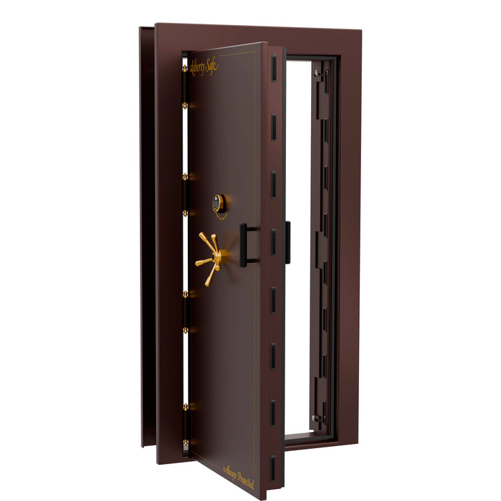 The Vault Door combines style with superior theft and fire protection for an elegant look that fits any decor. Massive 4-inch military style locking bars that are 1/2 inch thick will defend against any pry attacks. 2.5 hour fire rated door and heat-expanding Palusol door seal protects from smoke and heat. Vault Door includes both inside release 3-point handle and inside lock lever to lock door from the inside as a panic room. If your plans include a whole room full of items to protect...Liberty's Vault Door will get the job done.